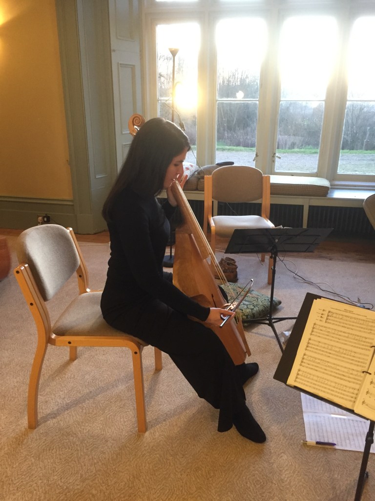 Our rehearsal space for the week was the Sitting Room with its Cotswolds’ view. We were very pleased that Héloïse Bernard joined us from Glasgow for the week so that we could rehearse for our Barber lunchtime concert, Birmingham, on Friday 4th February and develop a new programme ‘Epitaph for a Green Lover’- music from the Songbook of Marguerite of Austria.